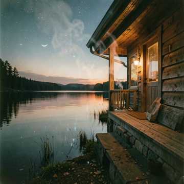 Acoustic Folk Rock, Warm male baritone vocals, soft acoustic guitar strumming, melodic harmonica, light percussion, relaxed lakeside vibe, sounds of ice clinking, nostalgic and cozy, 95 BPM.