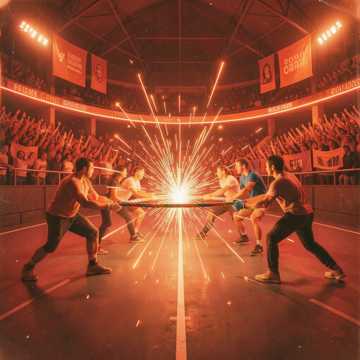 [Chorus] تحدّي الحبال، نار وشرار أربع فرق، قلب واحد صار شد شد شد، لا استسلام هذا المكان عنوان الحماس (كاريزما رفعي الهتاف)