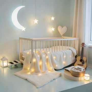 Warm lullaby feel over gentle acoustic guitar and soft piano; intimate female vocals very close-miked, light brush percussion entering by the second pass of the hook, building to a tender singalong chorus with subtle stacked harmonies and glockenspiel sparkle on key phrases