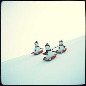 Wyszły się bawić na śniegu bałwanki jeden bez szalika, drugi bez czapki, bez rękawic śnieżki lepią i ciągają sanki.