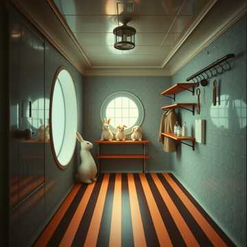 Podłoga w paski, ale tańczy tylko sufit, Gdy gumowe króliki ścigają się po rynnie. Wieszak na płaszcze nagle zaczął szeleścić, Że klucze do czasu leżą na parapecie. Mleko w kostkach lodu, światło w ko