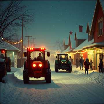 [Chorus] Traktorok a téli éjben Színes fények Csillagképek Nagyhalász ma együtt lélegzik Integet a járda széle Régi év már messze ér le Újhoz szól a motor üzenet