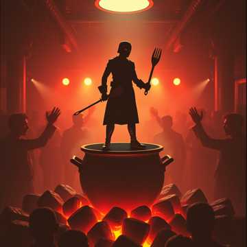 [Verse 1] Otwiera garnek jak bramę piekieł Para jak dym nad polem bitew Łyżka jak siekiera w dłoni drga Kiedy flaki widzi W oczach gra gniew