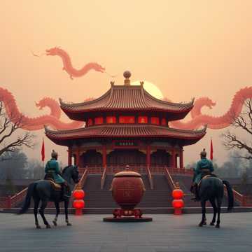 Direkt an der kinesischen Mauer wurde eine riesige Zinnober rote mit feinstem Kina Lack versiegelte und Goldplättchen verzierte mehrgeschossige Teehaus Pagode errichtet deren Drachen Flügel, geschwungenen Daches Schwingen in alle vier Richtungen zeigte und oben auf der runden Pagoden Spitz, ein riesiger Wolfs und Drachenkopf, die beide in die gleiche Richtung blickten. Dieses prächtige Bauwerk war nur zu diesem Anlass erricht und würd danach wieder abgeriss´n; eine Begegnung auf neutralem Boden der sowohl die Grenze als auch die Verbindung symbolisierte. Soviel Pracht und Prunk, glich schon fasst Verschwendungs Sucht; aber die Ressourcen dieses Landes waren nahezu unerschöpflich; Kaiser Kin Schie Huang´di wusste dies. Osman der Große; Khan aller Khane war in kompletter, der Skythen Tradition Kriegsbewaffnung und ritt vor der riesigen Teehaus Pagode auf den Sohn des Himmels und ewiglichen Herrscher des Drachen Throns, Kin Schie Huang´di zu der vollständig in erlesenstem Seidenlagen Prachtgewand gekleidet und jetzt auch von seinem unbezahlbaren Fer´ghana Hengst, Drachenwind abstieg und ihn freundlich begrüßte. Sie gingen durch das riesige runde Tor der Teehaus Pagode wo sie schon vom kaiserlichen Zeremonien Meister erwartet wurden, der ihnen knie´end eine große Bronzeschale darbot in der sie gemeinsam ihre Hände wuschen was die Reinheit der Absichten kund tut. Par Aghaba ward sich über die Absichten des Drachen Kaisers nicht so ganz sicher. Ich bin Par Aghaba die Feder des Adlers und wenn der Skythen Greife ihre Flügel in der Steppe Höhen schwingen wird bald des Todes Lied erklingen. Par Aghaba und Bulba Kahn Par Aghaba und Bulba Kahn Par Aghaba und Bulba Kahn Par Aghaba und Bulba Kahn. Jeder der Beiden nahm Platz auf seinem mit feinster Seide belegten und Weichester Daunen futtierten Diwan und der kaiserliche Teemeister begann den auf der Welt einzigartigen Da Hong Pa´o Tee zuzubereiten und das heilige Gong´fu Ch´a Teeritual begann. Kin Schie Huang´di opferte den Ersten Aufguss den Göttern während Osman einen Tropfen als Ehrerbietung an den ewigen blauen Himmel und Gott Tengri vergoss. Danach folgte der Austausch der Geschenke: Kin Schie Huang,di überreichte Osman Khan eine fast hundert Kilo schwere Imperial Kaiser Jade Tafel die in feinsten Nuancen Smaragd grün leuchtend schimmerte und auf irdischen Welten nicht zu bezahlen ist. Osman Khan schenkte dem jungen Kaiser, sie waren fast im gleichen Alter, ein weißes Ak´hal Teke Pferd das direkt mit den kaiserlichen Ferghana Pferden verwandt und heutzutage unbezahlbar ist und für die Freiheit und Loyalität der Steppe steht. Sie standen gemeinsam auf der Terrasse des wunderschönen kinesischen Gartens auf der Rückseite des Teehauses und bewunderten das edle, stolze Pferd und genossen das herrliche Morgenrot und den Morgentau bei dem der Blüten Blumen ganz sacht und langsam erwachten. Laßt uns reingehen treuer Freund es gibt noch viel zu besprechen heut. Der junge Kaiser spürte daß der junge Skythen und Oghusen Prinz ebenfalls auf Einigung, Koexistenz und Ausgleich aus war. Sie bedankten sich gegenseitig sehr herzlich für die edlen, erlesenen, einzigartigen Geschenke und nahmen wieder auf ihren Diwanen platz und der zweite Gang und achte Aufguss des herrlich duftenden Da Hong Pa´o Tees wurde ihnen vom kaiser´ lichen Zeremonien Meister gereicht. Par Aghaba fand das immer noch dekadent. Ich bin Par Aghaba die Feder des Adlers und wenn der Skythen Greife ihre Flügel in der Steppe Höhen schwingen wird bald des Todes Lied erklingen. Par Aghaba und Bulba Kahn Par Aghaba und Bulba Kahn Par Aghaba und Bulba Kahn Par Aghaba und Bulba Kahn Par Aghaba und Bulba Kahn Par Aghaba und Bulba Kahn Par Aghaba und Bulba Kahn Par Aghaba und Bulba Kahn. Par Aghaba und Bulba Kahn… Par Aghaba und Bulba Kahn Par Aghaba und Bulba Kahn Par Aghaba und Bulba Kahn Par Aghaba und Bulba Kahn. Par Aghaba und Bulba Kahn…