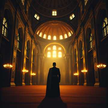 Bei den Tuchhändlern begrüßte sie ein Meer aus Samt und Seide; schwere Ballen kostbarster Stoffe aus Purpur, der Farbe der Sultane und schimmernde zart glänzende Seide die wie flüssiges Gewebe durch die Finger gleitet. Tiefgrüner und tiefdunkel nachtblauer Samt und Brokat verteilen ihr schimmernd, geschecktes, gebrochenes Licht und schlucken in sich hinein das flackernd, spärliche, ölig, rusige Licht der Öllampen, während die goldbestickten Brokate Geschichten aus fernen Ländern erzählen. Sie durchschritten das riesige Eingangstor der Hagia Sofia und ein Lichtermeer aus Gold, Silber, reinster funkelnder Edelsteine und reinem eingefangenen Licht tat sich vor ihnen auf; es fühlte sich an als würden sie den Mittelpunkt; das Zentrum des Universums betreten, so hell leuchtete das Licht, es ward eine Sternen Explosion. Sie standen inmitten der riesigen Himmelshalle und konnten ein Ende nicht entdecken; die Himmels Kuppel reicht samt Gewölbe bis in die Unendlichkeit des Himmels Höhen und ward so von goldenen Licht durchflutet daß man schon meinte das die Augen einem einen Streich spielten. Aber so Langsam hatten sie sich an das göttliche Licht gewöhnt und man konnt erkennen um was es hier geht und wie schön verziert diese Himmels Halle war. Feinste arabische Schriften waren an den Wänden eingraviert wie eintätowiert und leuchteten Goldlack schwarz und grüngolden Gelb und reichten in vielen Kalligrafischen Mustern und Ornamenten bis in des Himmels Höhen und viele Engel und Heilige waren zu bestaunen; viel Pomp und Prunk dachten sich die in Glaubens Dingen bescheidenen und toleranten Steppenkrieger; Rostam kannte das schon aus anderen Nah östlichen Kulturen. Die Dimensionen der Himmels Halle waren Ehrfurcht gebietend; viele Tausende von Gläubigen konnten hier Platz finden, vereint unter dem gigantischen, göttlichen Himmels Baldachin aus Stein und Gold. Der einzigartige Lichteinfall schuf eine spirituelle Aura von erfüllter, gemeinschaftlich erlebter liturgischer himmlischer Erfülltheit und spiritueller Qualität wie sie auf ähnliche weise wohl nur am höchsten Punkt der menschlich Menschenwesen Welt, dem heiligen Berg des Altai; auf der Spitze des Bergs Öteken auf dem Dach der Welt wo sich Himmel und Erde berühren zu finden ist.