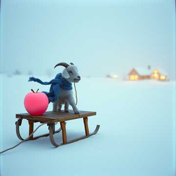 Яблоко на снегу — розовое на белом, Что же козлёнку делать с яблоком на снегу? Яблоко на снегу в розовой нежной коже, Козлик ему поможет, в санки свои положит!