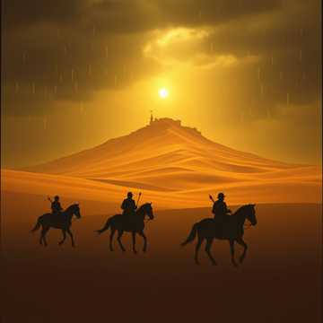 Aurangzeb ritt verbissen an vorderster Front Linie; hinter ihm seine ganze Mogul Kaiser Verwandtschaft und merkte nicht, daß sie mittlerweile in einer Talsenke mit hohen Dünen an den Seiten und vor sich die Erhebung mit der alten Zitadelle, die nicht zu umreiten und der Endpunkt im Tal Kessel und nur zu Fuß mit viel Mühe zu umgehen; und plötzlich drehten die achtzigtausend Radsch´puten Reiterkrieger um und stürmten in breiter, den ganzen Tal Kessel ausfüllender Front auf sie zu, mit ohrenbetäubendem Kriegsgeschrei; und es hagelte hundert Tausende von Pfeilen aus des Kessels Dünen und seine Krieger fielen und fielen zu tausenden unter der Pfeile tödlichem Beschuss; der Himmel ward schwarz und grausam sangen sie in des Himmels Höhen ihr tödlich Spiel; und immer noch ward kein feindliches Heer zu sehn. Sie versuchten zurück zu flieh´n; aber der Weg ward versperrt; sie waren eingekesselt. Volle Flucht nach vorn; da wurde er schon vom ersten Pfeil getroffen und fiel vom Pferd und sein Pferd gleich mit. Da wurden die Dünen schwarz und hundert tausende Perser, Skythen und Oghusen Krieger ritten die Dünen herab in leichtem Trab; ihre Skuthai Bögen gespannt; die nächste Salve würden sie nicht überleben; also forderte er Rana Singh Rathore zum Zweikampf heraus. Par Aghaba kannte diese Tradition auch aus der Skythen und Oghusen Heilig Steppenland. Ich bin Par Aghaba die Feder des Adlers und wenn der Skythen Greife ihre Flügel in der Steppe Höhen schwingen wird bald des Todes Lied erklingen. Par Aghaba und Bulba Kahn