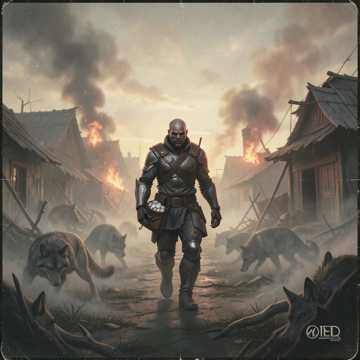 Epic dark-folk with male vocals, octave-doubled lead and low choirs. Fingerpicked lute and bowed strings in the verses; tom-heavy, tribal drums and hurdy-gurdy drone lifting the choruses. Gritty, intimate vocal in the lows that opens into a shouted, tavern-singalong hook. Reverb-kissed whistle lines weaving between sections for a mythic feel.