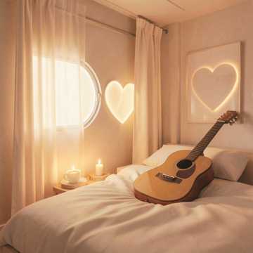 Warm Latin pop ballad with nylon guitar and light percussion, male vocals. Intimate first verse over sparse chords; chorus blooms with lush backing harmonies, shaker, and soft piano. Second chorus lifts with subtle string pads and extra ad-libs. Gentle reverb and close-mic vocal for a tender, romantic feel.
