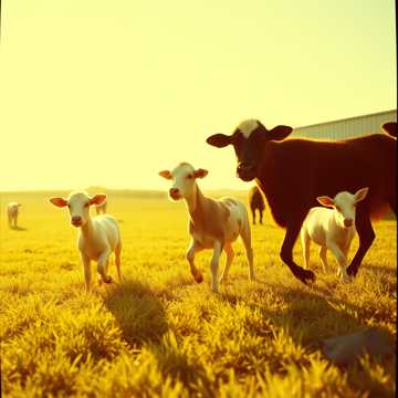 Auf einem Hof mit Huhn und Kuh