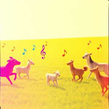 с яркими инструментами вроде ксилофона и треугольника, веселая, с простым и мелодичным ритмом, детская