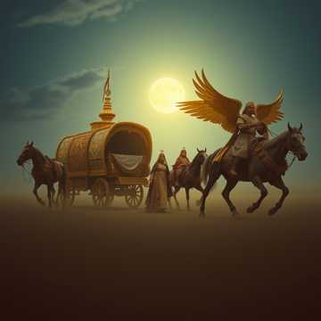 Par Aghabas skythischer Wohnburg Wagen war von zweimal zwölf Jochochsen gezogen, hatte dreimal drei Achsen und Achzehn massive Holzräder die mit purem Gold überzogen und fünf kleine Zimmer und einen großen Festsaal Der vollständig mit filigranen Blattgold Ornamenten bezogen und feinster persischer Teppiche behangen war. Par Aghabas Wagen war von oben bis unten mit feinsten Skythischen Goldornamenten verziert und beschlagen und vorne zwei mächtige Adlerschwingen aus reinem Gold so hoch wie zwei Mann. Die Hochzeitsgesellschaft waren viele befreundete Skythenstämme. Die Brautgesellschaft bestand aus zweihundert der tapfersten und edelsten Skythenkriegerinnen aus ihrem Stamm. Sie waren bis an die Zähne bewaffnet und trugen armfreie Harnische, noch nie hatte Bulba Khan so viele Adlerflügel, Greifschwingen, Pantherklauen auf Menschlicher Haut gesehen, manche hatten den Greif sogar im Gesicht tätowiert. Die Kriegspferde waren über und über mit Goldharnischen bedeckt. Er hatte schon Kriegspanzerungen an Pferden gesehen, aber diese hier waren aus reinem Gold. Par Aghaba trug über hundert massive goldreifen an Arm und Hals aus purem Gold. Und wo man hinsah Adlerschwingen, Adlerköpfe, Adlerklauen aus reinem purem Gold, Adler auf menschlicher Haut. Greife, Greife,Greife…