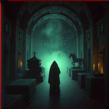 Sie gingen in die dunklen übel dunstenden uralten Gemäuer der tief im Felsmassiv geschlagenen eingelassenen Gruft unter dem riesigem Mausoleum und verspürten leichte Zugluft und übel modriger Geruch wehte ihnen entgegen und über hundert große massive Grabmäler aus altem verblasstem Marmor und Granit nahmen sie in die Welt der Toten mit; sie öffneten die Grabplatten und Särge und überall Leichen viele Leichen frisch oder halb verwest oder schon nur noch Knochen übelster der Verwesung Geruch schlug ihnen entgegen Leichen nichts als Leichen sogar kleine Babys warn dabei und viel modrige alte Erde und im größten Grabmal fanden sie ihn endlich den Höllenfürsten Blutgrafen; der Sarg war vollständig aus massivem Bleiguss gegossen worden und mit uralten Schriften,Symbolen und Zeichen des viele tausend Jahre alten Drachenordens versehen worden die der schwarzen Kunst uralter geheimer Sprachen und Schriften und Schwurformeln kundig waren und oben auf der riesig Deckplatte waren Blutrinnen und Opfersteine angebracht auf der die blutig Rituale stattfanden die schwere Deckplatte aus schwarzem funkelnd gleißend Gestein das sich eher wie Metall anfühlte war Pechblende aus der Böhmen und Mähren Land herbeigeschafft und hatte das Tierwesen in sich drin das töten kann wenn es berührt mit glitzernd, funkelnd fluoreszierendem grünlich schimmernd Licht leuchtet das tödliche Gestein in der finstren Gruft das Metall darin war hoch radioaktiv. Sie hoben die Platte ab und hunderte schwarze stinkende halbverwehste Ratten sprangen heraus sie hatten sich selbst Stücke aus dem Leib gefressen und ihre Gedärme hingen heraus aus After Magen und Bauch. Die Gruft war leer nur eine glänzende goldene Rüstung darin als hät man sie erst gestern reingetan nebst Helm Harnisch Brünne Schild und Schwert selbst Beinschienen warn dabei. Die Nacht nahte schon sie mussten aufbrechen solang der Hölle Schadenzauber gebrochen und der Blutfürst kein Blut trinken oder Schaden für Leib und Leben anrichten konnte. Par Aghaba sprang auf ihr Pferd und alle folgten ihr