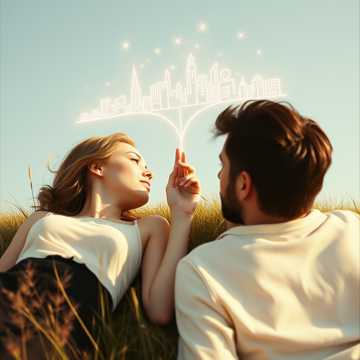 Dos pintores tirados en la grama haciendo un mismo cuadro