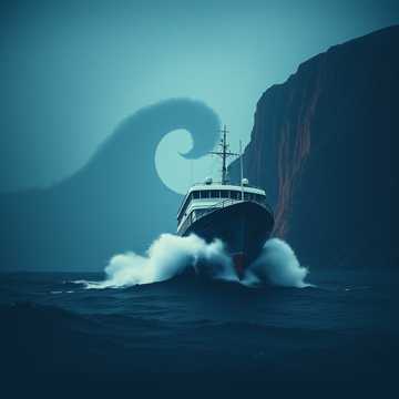 Dramatic orchestral rock, male vocals. Low strings and toms rumble like distant thunder, brass hits accent the cliffs, distorted guitars double the main motif in the chorus. Verses stay tense and narrative with sparse piano and tremolo strings; chorus opens into a wide, choral hook with timpani and cymbal swells. Bridge drops to near-silence with solo cello and vocal, then erupts into a towering finale.