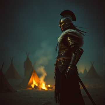 Par Aghaba und Bulba Kahn, mit Oghusan an ihrer Seite, standen auf der Anhöhe und blickten vom Rücken ihrer Pferde weit in die Steppe unter sich das Tiefe Tal; wo in der Nacht funkelte das Erdgruben Behausung Häuser Wohnlager der Menschenfresser Botai Barbaren und schossen ab den ersten Pfeil. Sie hatten an ihre spitzen Steppenkrieger Helme Wangenklappen befestigt die das ganze Gesicht bedeckten; innen gut mit skythischem Yak Filz wattiert, nur die Augen waren frei, um so dem tödlichen Atem der Botai zu entgeh´n. Der Skythen und Oghusen Stammesverbände umritten das Lager in hunderten von gebündelter Kampfverbänden und schossen tausender Pfeile pro Sekunde in entgegengesetzter Richtung reitend bei völliger Dunkelheit durch die Linien Lücken und drangen nun stoßweise in das Lager ein und setzte nun Brandsatz ein und es hagelte nun Brandpfeile von der andren Richtung Seite und so wurden ihnen die Menschenfresser genau vor ihren gespannten Skuthai Bogen getrieben und starben tausendfach in der Pfeile Hagel tödlichem Gruß. Oghusan sprang vom Pferd und das skalpieren und enthäuten begann. Überall an den Feuerstellen lagen noch verkohlte unverzehrte Menschenreste herum und halb gar gekochte Köpfe schwammen in den Kupfertöpfen auf der fettigen, kochenden Menschenfett Kraftbrühe herum. Oghusan hatte schon vier schöne Kriegerköpfe abgetrennt, die er an seinen goldenen Kriegergürtel gehängt, die besonders tapfer gegen ihn gekämpft und hatte auch schon deren Brust und Rückenhaut abgezogen, die mit wunderschönen Schlangenköpfen tätowiert; daß wären wieder vier super edle mit reinem Skythen Gold verzierte Bogen und Pfeil Futteral für ihn geworden. Doch plötzlich völlig unverhofft traf ihn ein mächtiger Keulenschlag am Hinterkopf. Ich bin Par Aghaba die Feder des Adlers und wenn der Skythen Greife Ihre Flügel in der Steppe Höhen schwingen wird bald des Todes Lied erklingen. Par Aghaba und Bulba Kahn Par Aghaba und Bulba Kahn