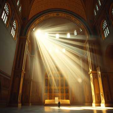 Bei den Tuchhändlern begrüßte sie ein Meer aus Samt und Seide; schwere Ballen kostbarster Stoffe aus Purpur, der Farbe der Sultane und schimmernde zart glänzende Seide die wie flüssiges Gewebe durch die Finger gleitet. Tiefgrüner und tiefdunkel nachtblauer Samt und Brokat verteilen ihr schimmernd, geschecktes, gebrochenes Licht und schlucken in sich hinein das flackernd, spärliche, ölig, rusige Licht der Öllampen, während die goldbestickten Brokate Geschichten aus fernen Ländern erzählen. Sie durchschritten das riesige Eingangstor der Hagia Sofia und ein Lichtermeer aus Gold, Silber, reinster funkelnder Edelsteine und reinem eingefangenen Licht tat sich vor ihnen auf; es fühlte sich an als würden sie den Mittelpunkt; das Zentrum des Universums betreten, so hell leuchtete das Licht, es ward eine Sternen Explosion. Sie standen inmitten der riesigen Himmelshalle und konnten ein Ende nicht entdecken; die Himmels Kuppel reicht samt Gewölbe bis in die Unendlichkeit des Himmels Höhen und ward so von goldenen Licht durchflutet daß man schon meinte das die Augen einem einen Streich spielten. Aber so Langsam hatten sie sich an das göttliche Licht gewöhnt und man konnt erkennen um was es hier geht und wie schön verziert diese Himmels Halle war. Feinste arabische Schriften waren an den Wänden eingraviert wie eintätowiert und leuchteten Goldlack schwarz und grüngolden Gelb und reichten in vielen Kalligrafischen Mustern und Ornamenten bis in des Himmels Höhen und viele Engel und Heilige waren zu bestaunen; viel Pomp und Prunk dachten sich die in Glaubens Dingen bescheidenen und toleranten Steppenkrieger; Rostam kannte das schon aus anderen Nah östlichen Kulturen. Die Dimensionen der Himmels Halle waren Ehrfurcht gebietend; viele Tausende von Gläubigen konnten hier Platz finden, vereint unter dem gigantischen, göttlichen Himmels Baldachin aus Stein und Gold. Der einzigartige Lichteinfall schuf eine spirituelle Aura von erfüllter, gemeinschaftlich erlebter liturgischer himmlischer Erfülltheit und spiritueller Qualität wie sie auf ähnliche weise wohl nur am höchsten Punkt der menschlich Menschenwesen Welt, dem heiligen Berg des Altai; auf der Spitze des Bergs Öteken auf dem Dach der Welt wo sich Himmel und Erde berühren zu finden ist.