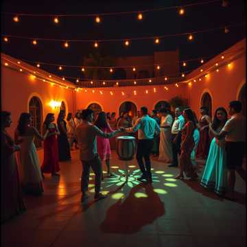 Levantine pop-dabke banger, mid-tempo groove built on earthy tabla and mijwiz riffs, thick synth bass locking with stomping percussion. Male vocals up front with call-and-response gang shouts on the hook; claps and crowd noise lift the chorus into a full wedding-party chant. Short spoken hype moments, tight arrangement that circles back to an instantly memorable chant.