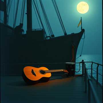 Raw, slow-burning acoustic ballad with male vocals; close-mic’d nylon guitar and sparse cajón pulse. Verses stay intimate and hushed, almost spoken; chorus swells with layered low harmonies and a distant tambora hit for weight. Subtle ambient drones creep in after the first chorus to suggest the ship’s hold, growing slightly in the bridge, then dropping back to just voice and guitar for a stark, unresolved ending.