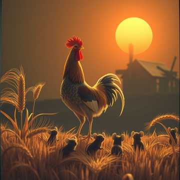 А петушок чуть свет поднимался, сперва всех песней будил, а потом принимался за работу. Вот однажды подметал петушок двор и видит на земле пшеничный колосок.