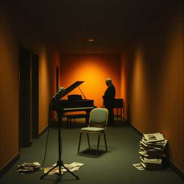 ambient, classic piano, pizzicato strings, slow, spoken word, male