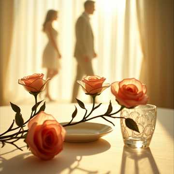 We are glass roses on the table