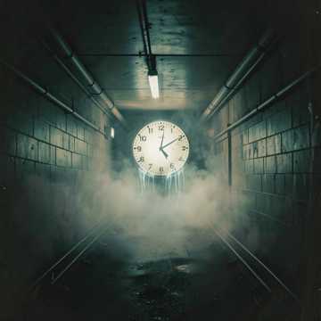 Sub-bass pulsing under a muted, ticking groove; sparse piano plucks and distant metallic hits set a patient investigative mood. Male vocals in a low, intimate register, almost whispered. Gradual build with evolving drones and swelling strings that edge toward tension yet stay controlled, never exploding. Subtle reverse effects and clock-like percussion to hint that something is closing in.