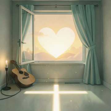 Warm acoustic-pop worship, Hungarian male vocals. Fingerpicked guitar and soft piano, subtle pads swelling in the chorus. Verse 1 intimate and close-mic, chorus lifts with airy backing harmonies and gentle toms; bridge thins to almost a cappella before a final wide, hope-filled chorus.