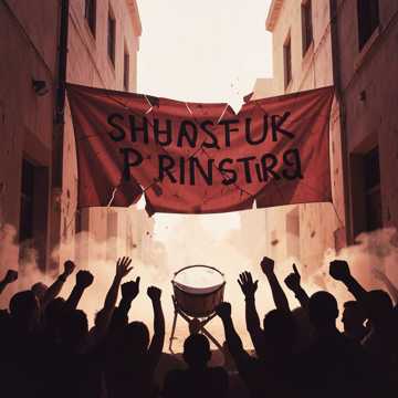 Raw tribal-style Arabic protest chant; male vocals with urgent call-and-response, frame drum pulse, claps on the offbeat, verses tight and declamatory, chorus explodes with gang vocals and octave doubling, final repeat adds ululations and stomping crowd energy