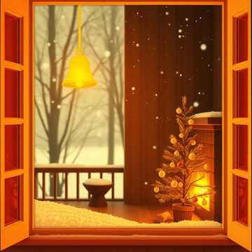 warm, acoustic with soft guitar and jingling bells