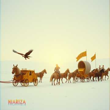 Par Aghabas skythischer Wohnburg Wagen war von zweimal zwölf Jochochsen gezogen, hatte dreimal drei Achsen und Achzehn massive Holzräder die mit purem Gold überzogen und fünf kleine Zimmer und einen großen Festsaal Der vollständig mit filigranen Blattgold Ornamenten bezogen und feinster persischer Teppiche behangen war. Par Aghabas Wagen war von oben bis unten mit feinsten Skythischen Goldornamenten verziert und beschlagen und vorne zwei mächtige Adlerschwingen aus reinem Gold so hoch wie zwei Mann. Die Hochzeitsgesellschaft waren viele befreundete Skythenstämme. Die Brautgesellschaft bestand aus zweihundert der tapfersten und edelsten Skythenkriegerinnen aus ihrem Stamm. Sie waren bis an die Zähne bewaffnet und trugen armfreie Harnische, noch nie hatte Bulba Khan so viele Adlerflügel, Greifschwingen, Pantherklauen auf Menschlicher Haut gesehen, manche hatten den Greif sogar im Gesicht tätowiert. Die Kriegspferde waren über und über mit Goldharnischen bedeckt. Er hatte schon Kriegspanzerungen an Pferden gesehen, aber diese hier waren aus reinem Gold. Par Aghaba trug über hundert massive goldreifen an Arm und Hals aus purem Gold. Und wo man hinsah Adlerschwingen, Adlerköpfe, Adlerklauen aus reinem purem Gold, Adler auf menschlicher Haut. Greife, Greife,Greife…