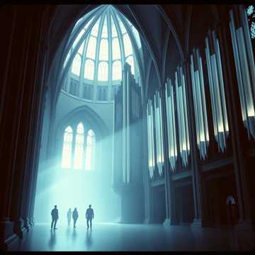 Bleak trap-ambient hybrid: cavernous airy pads and reversed cymbal swells, ultra-slow tempo. Sub rattles with gliding 808 slides that feel like tectonic shifts under a sparse, detuned bell motif. Occult choir textures and distant whispers weave in and out, with long reverb tails and sudden dropouts that leave eerie negative space., slow