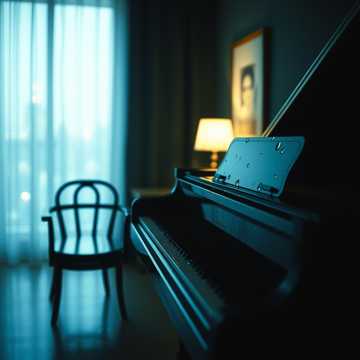Moody solo piano ballad, intimate room tone, slow rubato feel. Melody carries the emotion with sparse left-hand chords and occasional broken arpeggios. Starts delicate and close, swells in the middle with wider voicings, then pulls back to a fragile, lingering ending—lots of pedal for a soft, rainy blur.