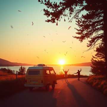 Husbilen packad med vänner och prat