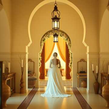Classic Yemeni wedding processional in Ayoub Tarish’s spirit: lush oud and qanun over steady hand percussion and deep bass doholla. Male vocals lead a proud, melodic chant; call-and-response backing group answers with short phrases and claps. Energy starts ceremonial and stately, then swells into joyful circles of rhythm and ululation, with a brief breakdown for the bride’s entrance before the final big chorus.