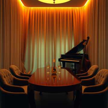 funk, Slow-burning chill jazz-blues fusion, warm electric guitar trading soft phrases with rounded piano voicings over a brushed, laid‑back groove. Upright bass walks sparsely, leaving velvet pockets of space; subtle cymbal swells and light percussion add shimmer. Mix is intimate and classy, perfect as tasteful luxury dining background, easing in with restraint and blooming gently into richer harmonic colors before settling back down., electric, soft, jazz blues, slow, smooth, warm, minimal