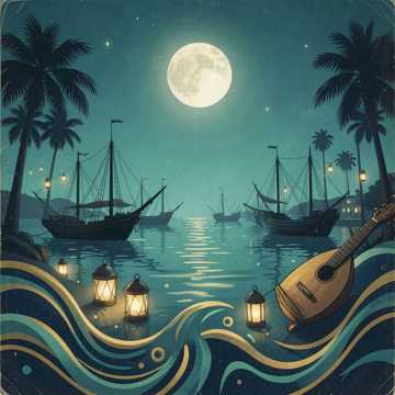 Mid-tempo Gulf-pop fusion with Omani Liwa/Razha groove under modern Samri/Khbeiti swing; deep frame drums, layered mirwas patterns, earthy Omani bass drum. Male vocals riding a call-and-response hook; oud carries the main riff while violin glides in the choruses with soaring countermelodies. Verses stay close and percussive, chorus opens wide with stacked harmonies and claps, final repeat adds ad-lib runs and rhythmic stops for crowd energy.