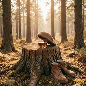 Med whiskey i glaset och skogen som tur.