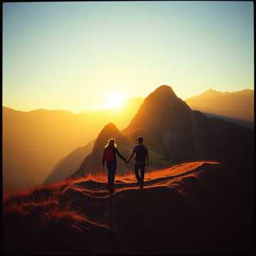 Machu Picchu csúcsán állnak, a szél simítja arcukat,
