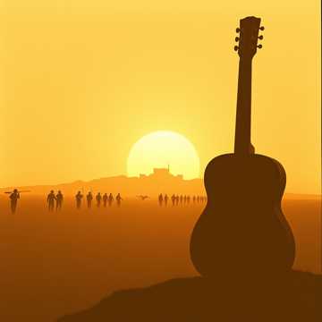melodic, world, with steady percussion evoking a march to battle. male vocals to convey a strong, acoustic, country, courageous narrative., with a blend of somber and triumphant tones; driven by acoustic guitar and fiddle