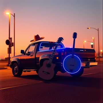 rap, contrast of gritty, hard-hitting rap beats with a twangy country guitar riff; playful, country, rhythmic energy with contrasting textures