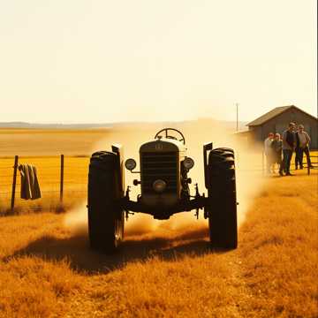 Upbeat Central European folk-pop with bright accordion, jangly acoustic guitar, and a bouncy kick-snare groove. Male vocals, earthy and casual, with group shouts on the hook. Tractor engine FX tucked low in the intro and breaks; chorus widens with claps, octave doubles, and a simple singalong melody.