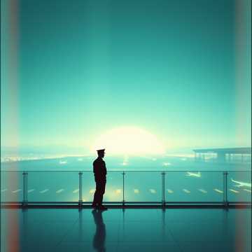 Он у кордона Твёрдый силуэт Плечи прямые Форма по размеру Взглядом встречает каждый новый рейс Словно стоит у входа в иную вселенную