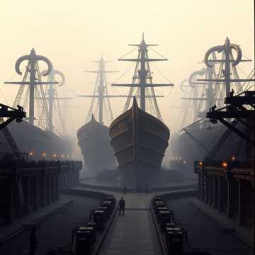 Die drei standen vor den riesigen Toren der Schiffsbau Werft von Türos und konnten ihren Augen nicht trauen; noch nie hatten sie so etwas gesehen; geschweige denn vermuten können daß so etwas menschenmöglich ist. Ein ohrenbetäubender Lärm aus tausenden von Hämmern, Sägen, Flaschenzügen, lange Holzspanten die auf Ochsenkarren herbei geschafft wurden. Das zischen von heißem Metall das in Öl abgeschreckt wurde. Es roch betörend nach frischem gerade geschnittenem Zedernholz und beißender dampfender Rauch kam aus den Werft Schmieden heraus und das schwere Aroma von kochendem, schwelenden Pech und Bitumen lag überall in der Luft. Lange Reihen hölzerner Gerüste unter denen die skelettartigen Rümpfe der Tri´ern Kriegs Galee´ren emporragten und überall lag der Duft von frischem Zedernholz in der Luft. Sklaven und freie Handwerker bewegten sich in Kolonnen, um schwere Balken mit Flaschenzügen und Kranbalken nach ägyptischem Vorbild in die Höh zu zieh´n. Hier wurde ein Kriegsschiff nicht als Einzelstück geplant sondern durch modulares Bauen aus einem Katalog standardisierter Teile zusammengefügt. Diese Effizienz erlaubte es Türos, nach schweren Seeschlachten innerhalb weniger Monate eine komplett neue Flotte zu Wasser zu lassen, was ihre Feinde oft in Staunen versetzte. Das Werft Arsenal von Türos befand sich innerhalb der stark geschützten, massiven Stadtmauern, im Bereich des sidonischen Nordhafens und war durch Meerketten und viele schwer Befestigte Wehrtürme gesichert. Ähnlich wie in Karthago gab es kreisförmige, runde ausgehobene, künstliche Kothon Becken die dem Schutz der Flotte dienten. Entlang des Ufers reihten sich hunderte von überdachten Neso´i ´koi Trockendocks und Schiffshäusern und die schmalen langen Rampen aus Stein waren geneigt, damit die Schiffe nach dem Bau direkt ins Wasser gleiten konnten. Bulba Kahn dacht sich seine Frau Par Aghaba müsst das unbedingt sehn. Ich bin Par Aghaba die Feder des Adlers und wenn der Skythen Greife ihre Flügel in der Steppe Höhen schwingen wird bald des Todes Lied erklingen. Par Aghaba und Bulba Kahn Par Aghaba und Bulba Kahn Par Aghaba und Bulba Kahn