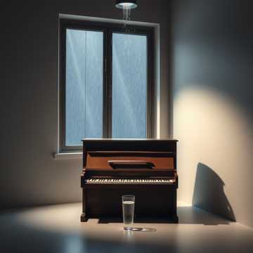 (Delikatne pianino, w tle dźwięk miarowego deszczu uderzającego o szybę)