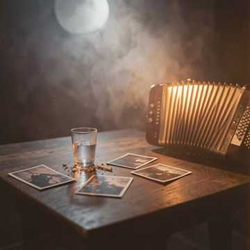 Modern Balkan pop-folk ballad, mid-tempo groove with gentle drums, warm bass, and wistful accordion lines; male vocals up close and intimate in verses, chorus lifts with string pad swells and subtle backing harmonies, arrangement stays spacious so the vocal ache and hook sit front and center