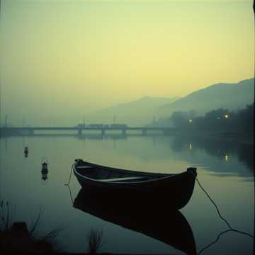 Bềnh bồng tấm lưới với thuyền câu.