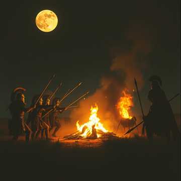 Par Aghaba und Bulba Kahn, mit Oghusan an ihrer Seite, standen auf der Anhöhe und blickten vom Rücken ihrer Pferde weit in die Steppe unter sich das Tiefe Tal; wo in der Nacht funkelte das Erdgruben Behausung Häuser Wohnlager der Menschenfresser Botai Barbaren und schossen ab den ersten Pfeil. Sie hatten an ihre spitzen Steppenkrieger Helme Wangenklappen befestigt die das ganze Gesicht bedeckten; innen gut mit skythischem Yak Filz wattiert, nur die Augen waren frei, um so dem tödlichen Atem der Botai zu entgeh´n. Der Skythen und Oghusen Stammesverbände umritten das Lager in hunderten von gebündelter Kampfverbänden und schossen tausender Pfeile pro Sekunde in entgegengesetzter Richtung reitend bei völliger Dunkelheit durch die Linien Lücken und drangen nun stoßweise in das Lager ein und setzte nun Brandsatz ein und es hagelte nun Brandpfeile von der andren Richtung Seite und so wurden ihnen die Menschenfresser genau vor ihren gespannten Skuthai Bogen getrieben und starben tausendfach in der Pfeile Hagel tödlichem Gruß. Oghusan sprang vom Pferd und das skalpieren und enthäuten begann. Überall an den Feuerstellen lagen noch verkohlte unverzehrte Menschenreste herum und halb gar gekochte Köpfe schwammen in den Kupfertöpfen auf der fettigen, kochenden Menschenfett Kraftbrühe herum. Oghusan hatte schon vier schöne Kriegerköpfe abgetrennt, die er an seinen goldenen Kriegergürtel gehängt, die besonders tapfer gegen ihn gekämpft und hatte auch schon deren Brust und Rückenhaut abgezogen, die mit wunderschönen Schlangenköpfen tätowiert; daß wären wieder vier super edle mit reinem Skythen Gold verzierte Bogen und Pfeil Futteral für ihn geworden. Doch plötzlich völlig unverhofft traf ihn ein mächtiger Keulenschlag am Hinterkopf. Ich bin Par Aghaba die Feder des Adlers und wenn der Skythen Greife Ihre Flügel in der Steppe Höhen schwingen wird bald des Todes Lied erklingen. Par Aghaba und Bulba Kahn Par Aghaba und Bulba Kahn
