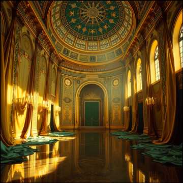 Bei den Tuchhändlern begrüßte sie ein Meer aus Samt und Seide; schwere Ballen kostbarster Stoffe aus Purpur, der Farbe der Sultane und schimmernde zart glänzende Seide die wie flüssiges Gewebe durch die Finger gleitet. Tiefgrüner und tiefdunkel nachtblauer Samt und Brokat verteilen ihr schimmernd, geschecktes, gebrochenes Licht und schlucken in sich hinein das flackernd, spärliche, ölig, rusige Licht der Öllampen, während die goldbestickten Brokate Geschichten aus fernen Ländern erzählen. Sie durchschritten das riesige Eingangstor der Hagia Sofia und ein Lichtermeer aus Gold, Silber, reinster funkelnder Edelsteine und reinem eingefangenen Licht tat sich vor ihnen auf; es fühlte sich an als würden sie den Mittelpunkt; das Zentrum des Universums betreten, so hell leuchtete das Licht, es ward eine Sternen Explosion. Sie standen inmitten der riesigen Himmelshalle und konnten ein Ende nicht entdecken; die Himmels Kuppel reicht samt Gewölbe bis in die Unendlichkeit des Himmels Höhen und ward so von goldenen Licht durchflutet daß man schon meinte das die Augen einem einen Streich spielten. Aber so Langsam hatten sie sich an das göttliche Licht gewöhnt und man konnt erkennen um was es hier geht und wie schön verziert diese Himmels Halle war. Feinste arabische Schriften waren an den Wänden eingraviert wie eintätowiert und leuchteten Goldlack schwarz und grüngolden Gelb und reichten in vielen Kalligrafischen Mustern und Ornamenten bis in des Himmels Höhen und viele Engel und Heilige waren zu bestaunen; viel Pomp und Prunk dachten sich die in Glaubens Dingen bescheidenen und toleranten Steppenkrieger; Rostam kannte das schon aus anderen Nah östlichen Kulturen. Die Dimensionen der Himmels Halle waren Ehrfurcht gebietend; viele Tausende von Gläubigen konnten hier Platz finden, vereint unter dem gigantischen, göttlichen Himmels Baldachin aus Stein und Gold. Der einzigartige Lichteinfall schuf eine spirituelle Aura von erfüllter, gemeinschaftlich erlebter liturgischer himmlischer Erfülltheit und spiritueller Qualität wie sie auf ähnliche weise wohl nur am höchsten Punkt der menschlich Menschenwesen Welt, dem heiligen Berg des Altai; auf der Spitze des Bergs Öteken auf dem Dach der Welt wo sich Himmel und Erde berühren zu finden ist.
