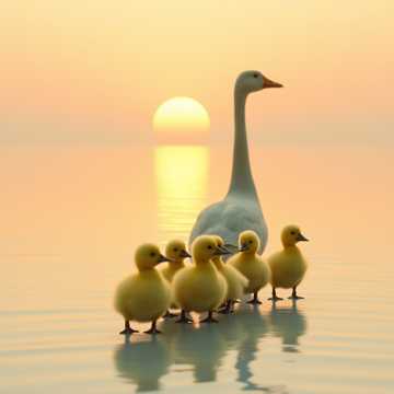 Мама-гусыня на пруд идёт,